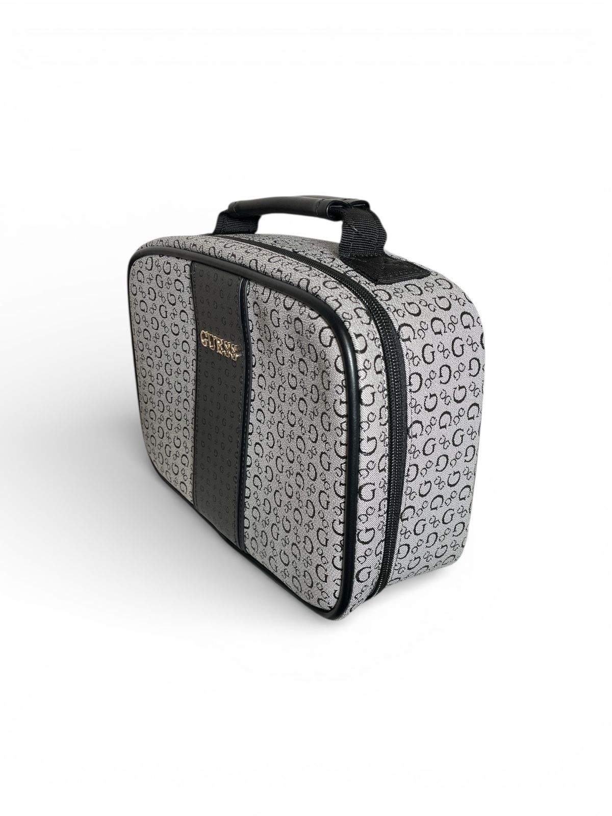 Neceser GUESS Original Gris Monograma con Franja Negra – Cosmetiquera